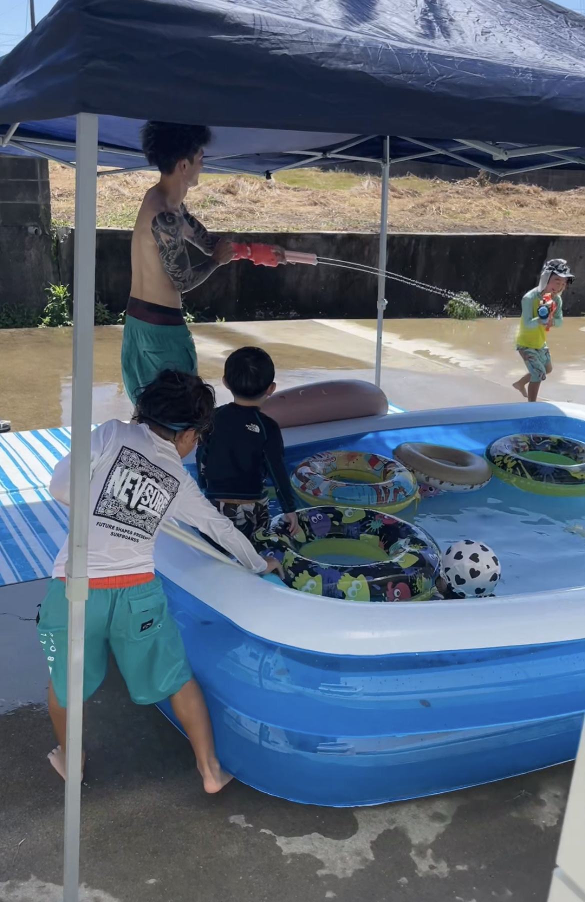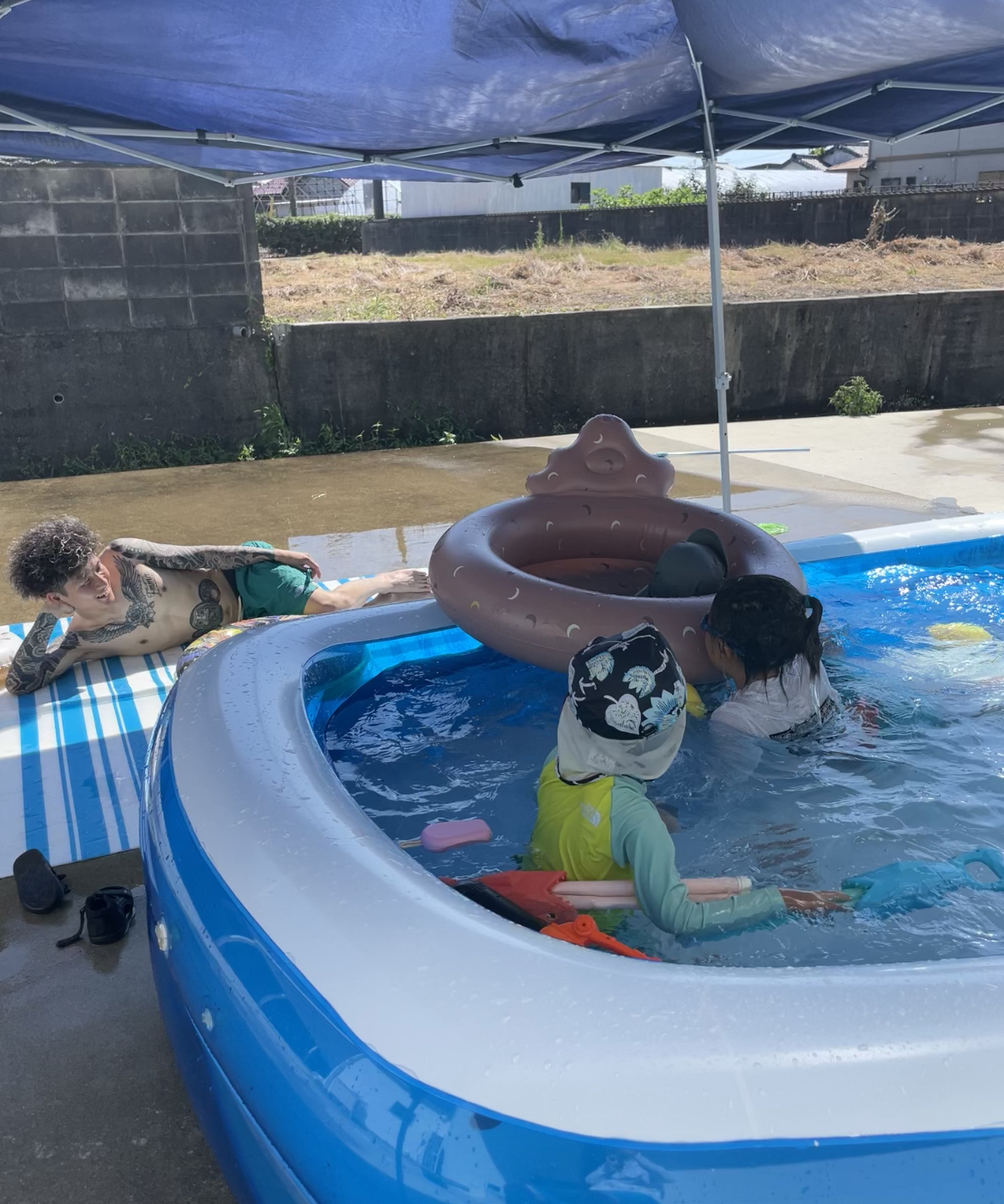 水遊び🏊 どうも前田です🙇♀️ 先日、お客様と水遊びをしまして🏊 暑かったですが水のおかげで涼しく遊べました🚿 たくさん水を使って遊べる有り難みを承知しないとですね🙏 朝から夕方まで楽しんでくれて感謝🙏 しかし、体力化け物😈 恐れ入ります🤣 なかなか出かけてやれないのでこれくらいで勘弁してねー🙏 それでは今週も宜しくお願い致します🙇♀️ 来週は、夏季休暇で、日曜日、月曜日、火曜日 お休みを頂きます🙇♀️ さいならさいならさいならさいなら🙇♀️