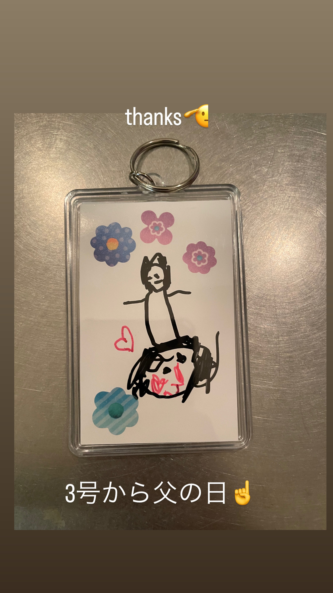 父の日 どうも前田です♀️ 日曜日は、父の日でしたっけ? 少し早めの父の日を3号から頂きました 手作りキーホルダーらしいです 三月画伯のオリジナル作品です 思い出になるので大切に使用します 15日 日曜日は、お休みです♀️ 宜しくお願い致します♀️ さいならさいならさいなら♀️